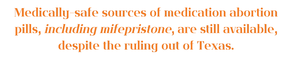 Some more good news: Medication abortion providers have already confirmed that they'll be following FDA protocol first and foremost while they continue to provide mifepristone—whether through the mail and or health care providers. Whole Woman’s Health (an independent abortion provider) said in a twitter statement last night, “[W]e follow directives from the FDA, and not anti-abortion judges in Texas who lack any formal medical training. Whole Woman’s Health will continue to dispense Mife in our clinics and our Pills by Mail program for the next week as we monitor both decisions.”