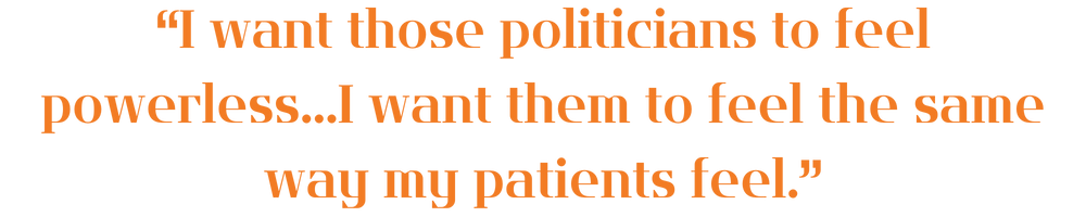 “I want those politicians to feel powerless,” the nurse said of her decision to join the ranks of the illegal abortion movement. “I want them to feel the same way my patients feel.”