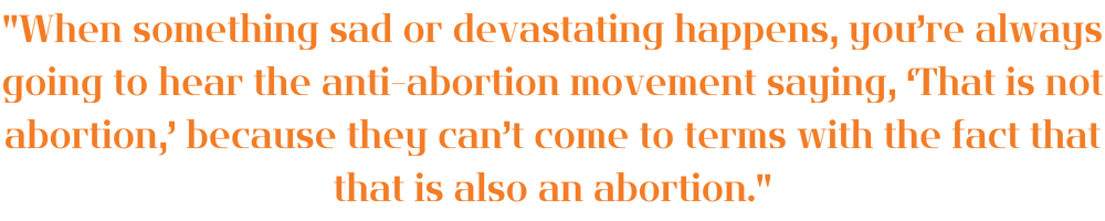 “When something sad or devastating happens, you’re always going to hear the anti-abortion movement saying, ‘That is not abortion,’ because they can’t come to terms with the fact that that is also an abortion. You can add all sorts of different words, you can say induced delivery, you can say quote-unquote elective, but it’s the same. It’s all part of how abortion has been stigmatized.”