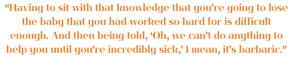 “Having to sit with that knowledge that you're going to lose the baby that you had worked so hard for is difficult enough. And then being told, ‘Oh, we can't do anything to help you until you're incredibly sick,’ I mean, it's barbaric.”