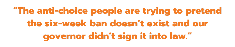 In the meantime, even the 15-week ban has had a stark effect on care. Laura Goodhue, executive director of the Florida Alliance of Planned Parenthood Affiliates, says they’ve seen patients with life-threatening conditions who haven’t been able to end their pregnancies: “Doctors have not been able to sign off on that because of these confusing laws and this completely arbitrary number of 15 weeks.”