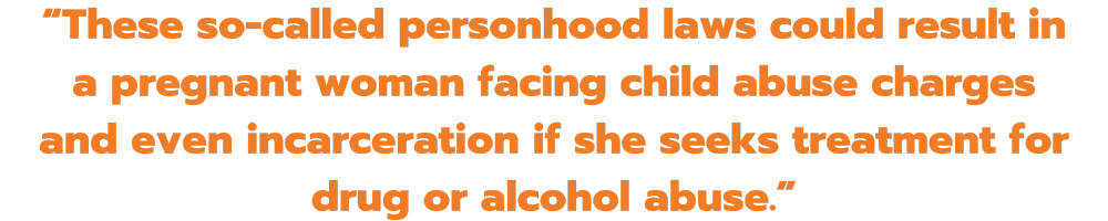 “What the bill would do would be to grant full personhood to an embryo from the moment of conception. These so-called personhood laws could result in a pregnant woman facing child abuse charges and even incarceration if she seeks treatment for drug or alcohol abuse.”