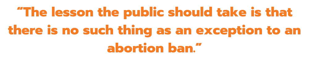 “The lesson the public should take is that there is no such thing as an exception to an abortion ban. If Kate Cox doesn’t get an abortion, if this bothers you, you should be against abortion bans entirely.”