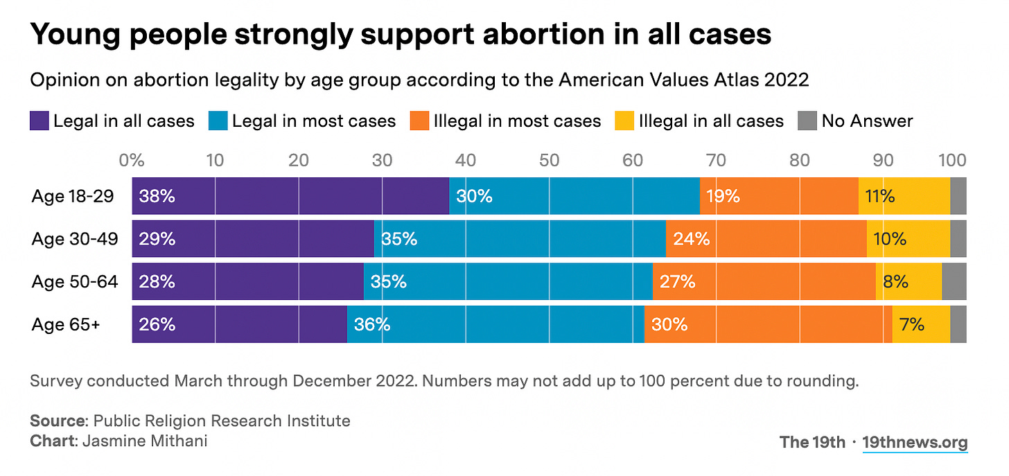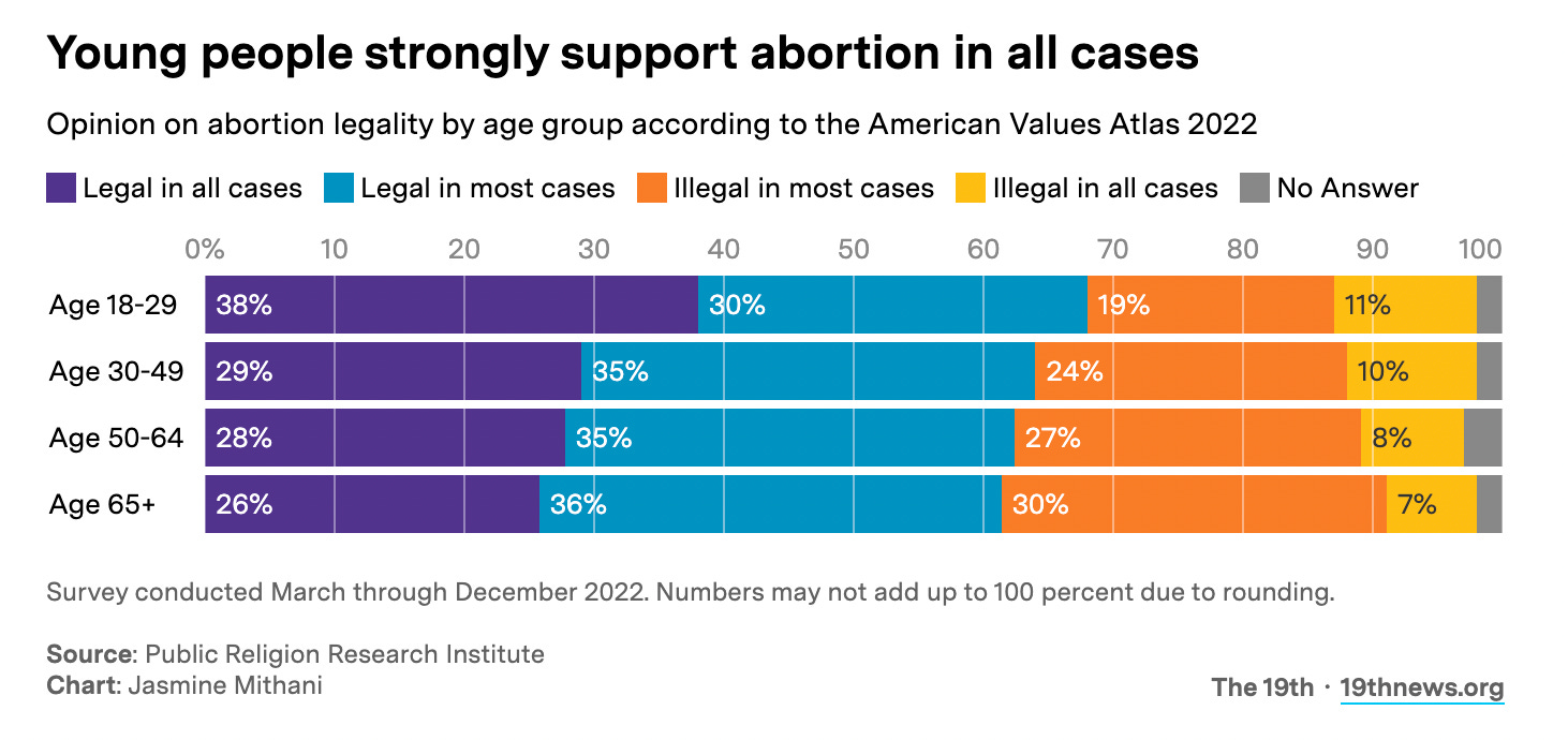 Speaking of young people, The 19th points out that one of the takeaways of that huge study I told you about yesterday on Americans’ views on abortion is that young people are becoming more pro-choice: