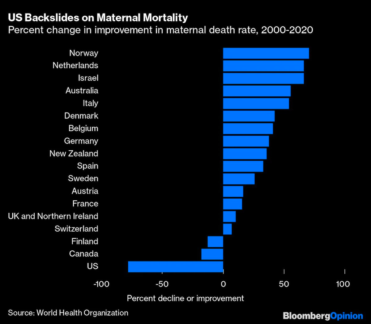 And while the World Health Organization reports that most countries are seeing their maternal mortality rate decrease, the United States is one of a minority of nations whose numbers are going up. This data, of course, was taken before Roe was overturned—so we know it’s only going to get worse. In the meantime, we should be ashamed. I know I am.