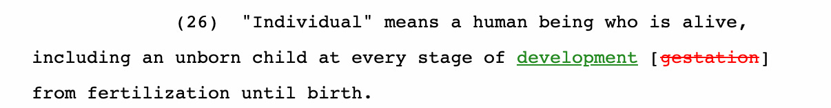 Essentially, House Bill 2709 modifies how a human being is defined in the state penal code, changing the word ‘gestation’ to ‘development’.