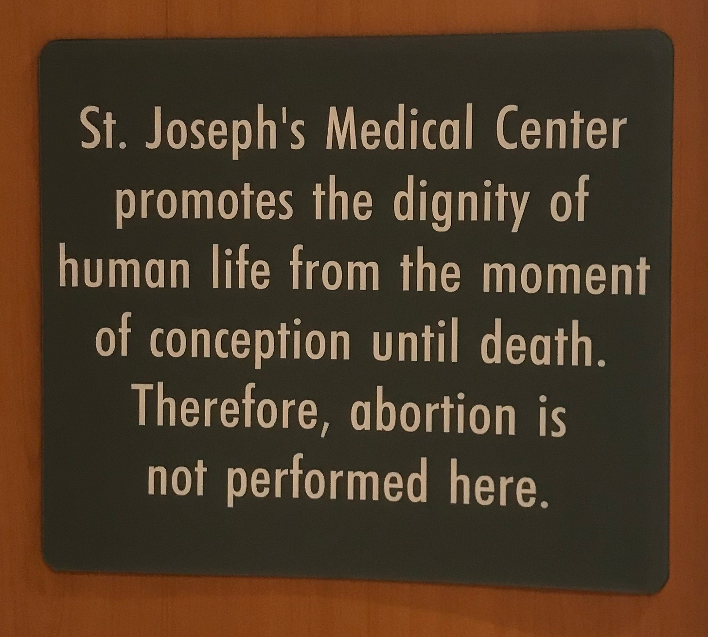 An Abortion, Every Day reader sent me the picture below: It’s a sign that’s prominently displayed as you enter the Labor and Delivery Unit at Dignity Health’s St. Joseph's Medical Center in Stockton, California.