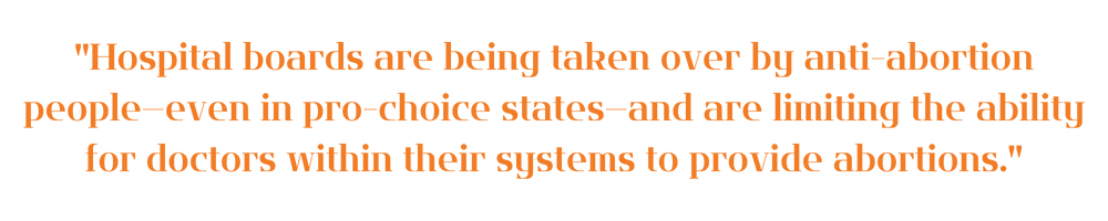 “It's not just a matter of who is sitting in the White House: School boards are important, and so are hospital boards. What we're seeing right now is that hospital boards are being taken over by anti-abortion people—even in pro-choice states—and are limiting the ability for doctors within their systems to provide abortions. The involvement of pro-choice people on every level is very important.”