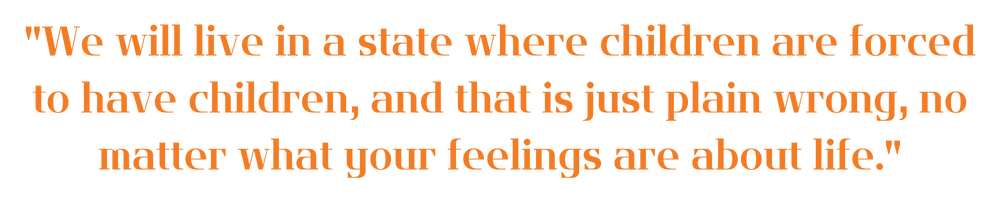 “Our leaders need to consider the rights of that child victim, and not interfere in the proper medical care and support needed. Otherwise, we will live in a state where children are forced to have children, and that is just plain wrong, no matter what your feelings are about life.”