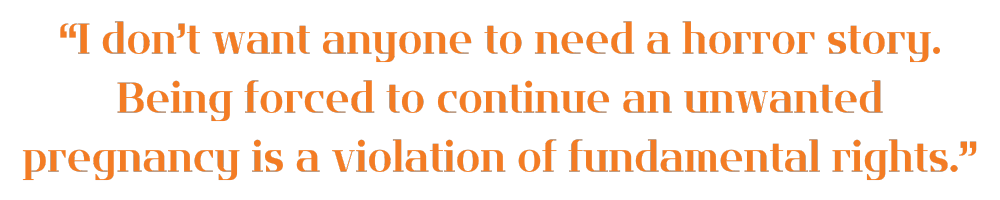 “I don’t need a horror story to justify it, and I don’t want anyone to need a horror story. Being forced to continue an unwanted pregnancy is a violation of fundamental rights.”