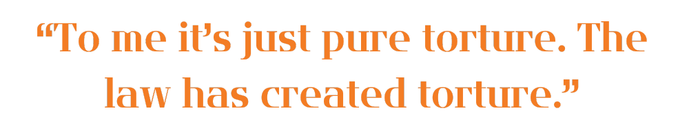 I don’t think I’ll ever get that phrase out of my mind: “the law has created torture”