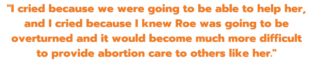 “There was one particular girl (before Georgia’s law took effect). She had just turned 13. It was a sexual assault (victim). She was 10 weeks…How could I turn that baby away? I walked out of that room and cried. I cried because we were going to be able to help her, and I cried because I knew Roe was going to be overturned and it would become much more difficult to provide abortion care to others like her.”