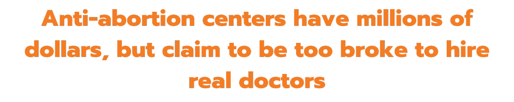 We know these funds will just continue to grow. Legislators in states with some of the strictest abortion bans in the country are passing policies that pour millions into crisis pregnancy centers through state grants and welfare programs—and incentivize wealthy donors and corporations to make charitable contributions to these centers through tax credits. And remember, the 19th* and Stateline recently reported that these tax credit policies “are structured to make donations to pregnancy resource centers far more lucrative for donors than contributions to other types of charities.”