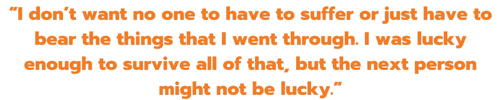 Blackmon says, “Going through all of that, I don’t want no one to have to suffer or just have to bear the things that I went through. I was lucky enough to survive all of that, but the next person might not be lucky.”