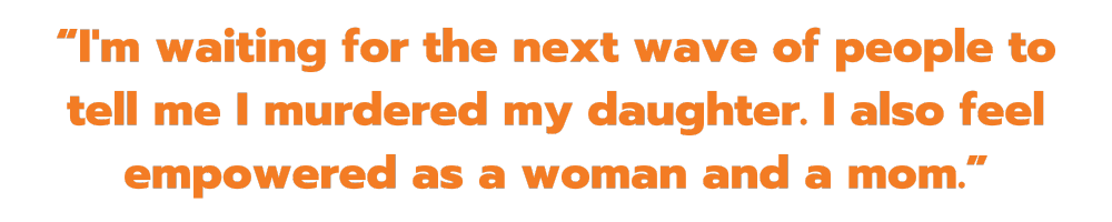 “I'm waiting for the next wave of people to tell me I murdered my daughter. I also feel empowered as a woman and a mom. I'm showing [my other daughter] that you can fight for change. If anything, I feel like this is a pivotal moment in my life.”
