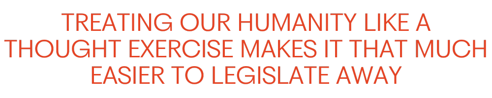 This sudden broad media interest isn’t some well-timed coincidence, either. We’re watching a deliberate conservative cultural push designed to undermine women’s rights. Some outlets are in on it, others are falling for it. Either way, the endgame is the same: treating our humanity like a thought exercise makes it that much easier to legislate away.