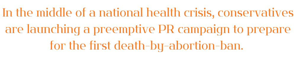 But they sure are focused on getting their talking points straight. That’s right, in the middle of a national health crisis, conservatives are launching a preemptive PR campaign to prepare for the first death-by-abortion-ban.