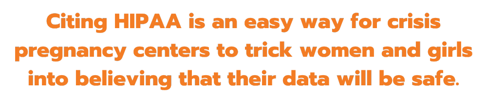 HIPAA, the federal law that protects sensitive patient information, doesn’t apply to nearly any crisis pregnancy centers. Because CPCs aren’t real medical clinics, they’re not beholden to the same privacy laws that OBGYNs and reproductive health clinics adhere to. But that hasn’t stopped them from trying to convince women otherwise.