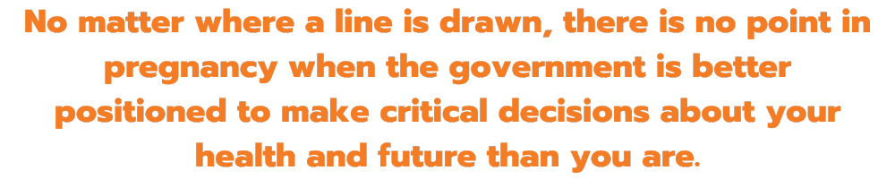 From state ballot initiatives like Ohio’s Issue 1, to federal legislation like the Women’s Health Protection Act (WHPA)—efforts that follow Roe’s framework accept the premise of an “appropriate” point for the state to get involved in pregnancy. But no matter where a line is drawn—whether at 15 weeks, 20 weeks or 24 weeks—there is no point in pregnancy when the government is better positioned to make critical decisions about your health and future than you are. But I digress.