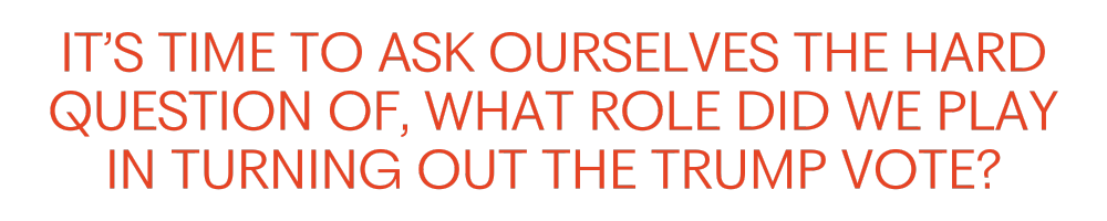"It’s time to ask ourselves the hard question of, what role did we play in turning out the Trump vote? We went out and told people that passing ballot measures would protect them…In a way, we gave Republicans a way to absolve their sins.”