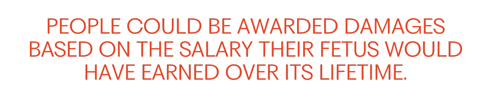 Under the bill, people could sue over mental pain, and be awarded damages based on the salary their fetus would have earned over its lifetime.