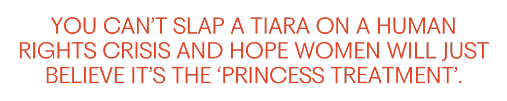 You can't slap a tiara on a human rights crisis and call it the 'princess treatment'