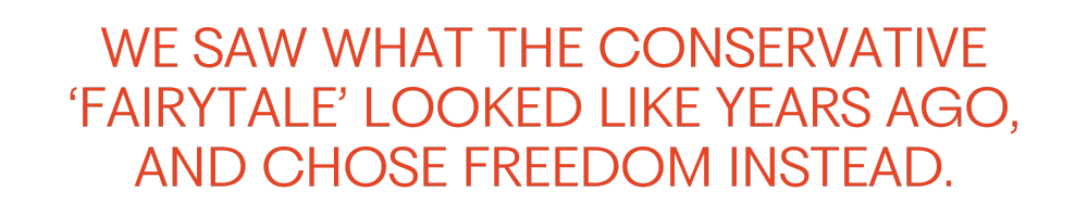 There’s no Disney movie about a Tennessee woman denied prenatal care for being unmarried, no glass slipper for the South Carolina woman arrested for her miscarriage. Yet that’s the lie conservatives are selling women: That the rapid erosion of our rights isn’t a political and moral crisis, but a fairytale. That secretly, feminism makes women unhappy, and what we really want is some big strong man—or the state—to come along and make all the decisions for us.