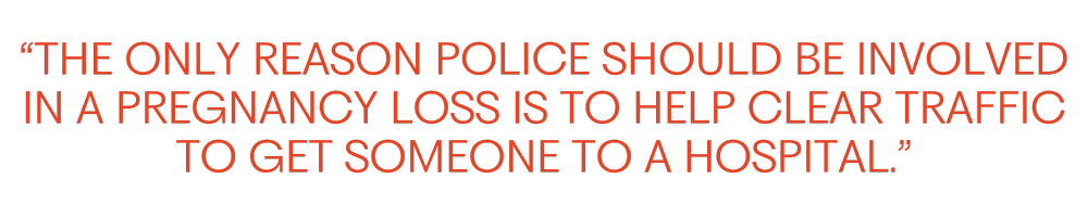 “As we know time and time again, they tread on stigma and misinformation…The only reason police should be involved in a pregnancy loss is to help clear traffic to get someone to a hospital.”