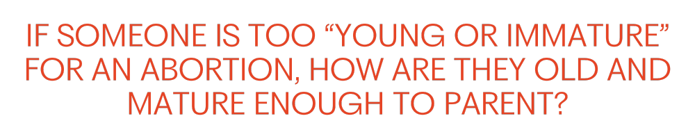Truly, if someone is too “young or immature” for a ten minute procedure, how in the fuck are they old and mature enough to parent?? This continues to be one of the most obvious hypocrisies in Republican abortion policy.