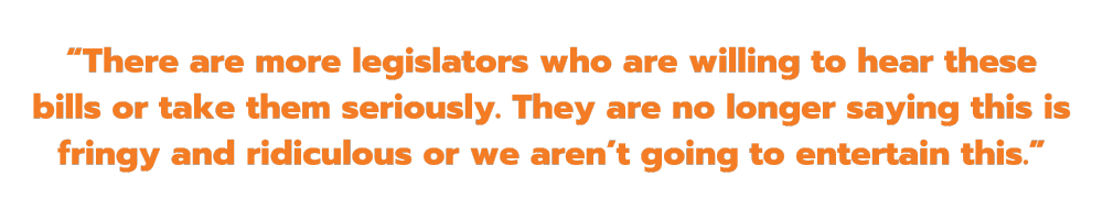 “There are more legislators who are willing to hear these bills or take them seriously. They are no longer saying this is fringy and ridiculous or we aren’t going to entertain this.”