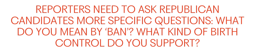 So what do we do? To start, reporters need to ask Republican candidates more specific questions: What do you mean by ‘ban’? Would you oppose any federal restrictions? What kind of birth control do you support? Emergency contraception and IUDs, too? Do you support allowing fertility doctors to continue working as they always have? Would you implement restrictions on embryo destruction?