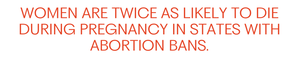 Of course women are twice as likely to die during pregnancy in states with abortion bans. The two Americas created by abortion bans don’t just determine your rights—but your life. In fact, the Gender Equity Policy Institute (GEPI) found that Texas’ maternal mortality rate is now 155% higher than California’s. To no one’s surprise, Black mothers are also over three times more likely than white mothers to die in states that have banned abortion.