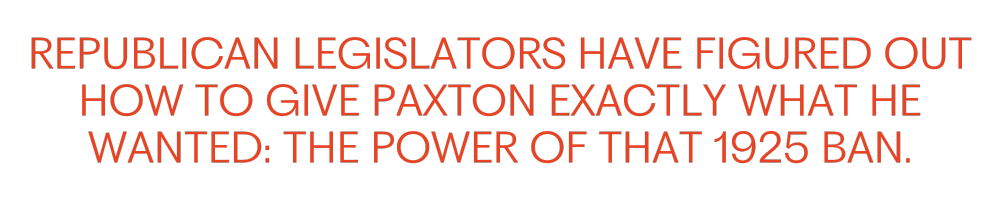 That brings us to the present day, where Republican legislators have figured out how to give Paxton exactly what he wanted: the legal firepower of that 1925 ban.